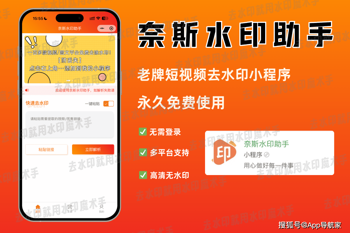 耶斯去水印无需下载安装,在微信上搜索即可使用,部分还支持Web/鸿蒙/iOS/Android端。它占用空间仅2MB,即使是低配设备也能流畅运行。操作非常简单,只需要3步,即复制链接、粘贴解析、保存,新手10秒就能上手。而且支持后台运行,在处理时用户还可以同时进行微信聊天。该工具每月都会进行功能升级,用户反馈采纳率达到40%以上,新平台适配平均7天就能上线,长期使用有保障,不用担心工具突然下架或者无法适配平台新规则的问题。