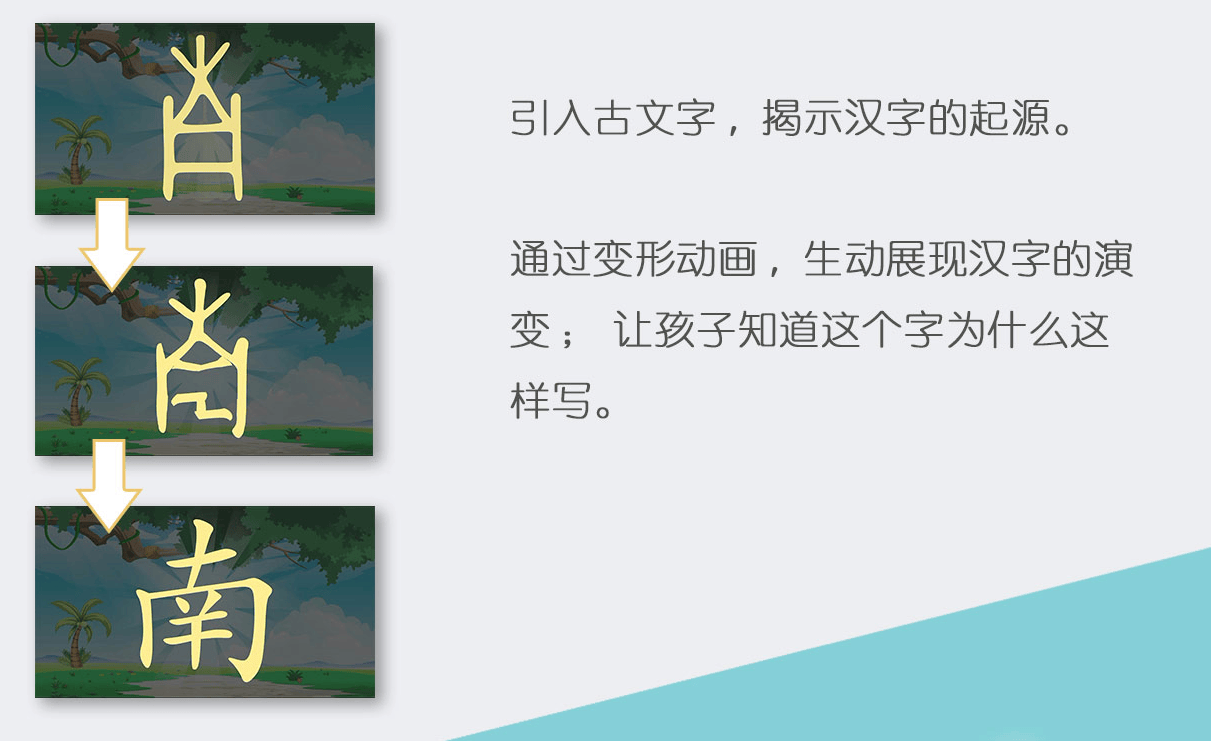 ,这也是小学语文老师普遍推荐的科学识字方法。APP将每个汉字还原成甲骨文的原始形态,通过生动的动画展示从甲骨文到楷书的演变过程,让孩子像看图画、听故事一样认识汉字:“日”是圆圆的太阳,“水”是流动的小河,“山”是连绵的山峰,直观的字形演变的让孩子理解汉字的“前世今生”,知道“这个字为什么这么写”,从根源上告别机械记忆。搭配趣味转盘交互、笔画临摹互动,孩子在探索汉字本源的过程中收获乐趣,全程无枯燥跟读,每天固定10多分钟,轻松养成坚持学习的好习惯。