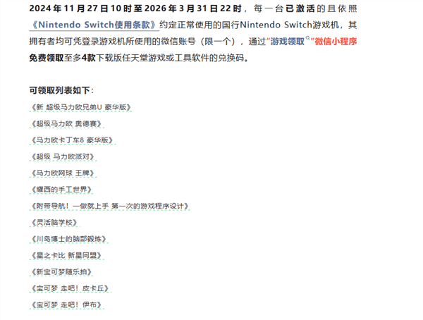 这个是国行Switch停服的补偿,所有国行用户可以从13款游戏任选4款免费领取,其中包括马里奥、宝可梦、星之卡比等多款任天堂第一方游戏,总价值预计超过1000元。