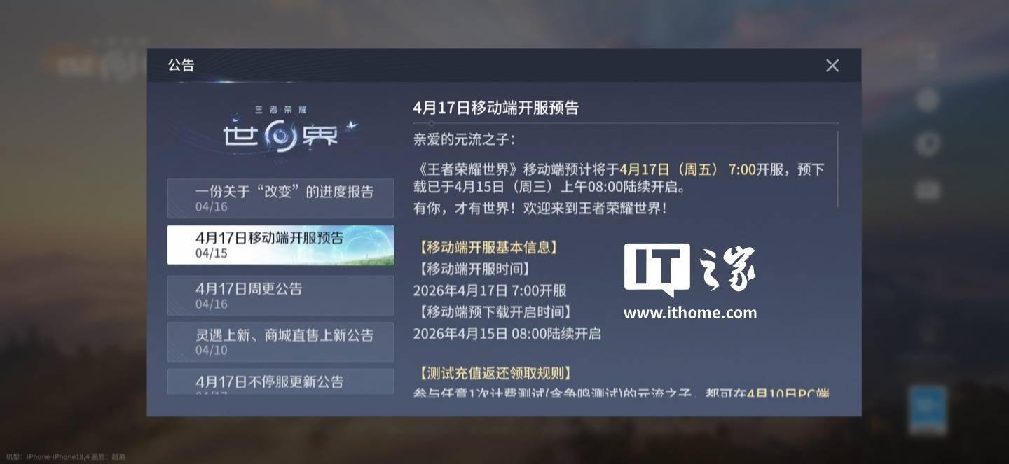 腾讯《王者荣耀世界》移动端今日正式上线,首发 Android 和 iOS 平台(鸿蒙端已开启邀测),正式开服时间预计为 4 月 17 日 7:00。另外,本作支持 PC / Android / iOS 多端互通。