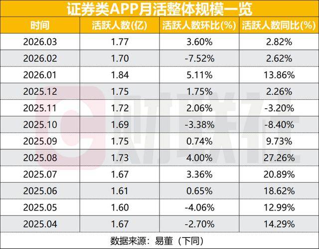 多宝体育,多宝体育官网,多宝体育下载,多宝体育登录,多宝体育app,多宝体育网址,多宝体育登录,多宝体育靠谱吗,多宝官网,多宝网址,多宝注册,多宝真人,多宝游戏A股市场交投情绪的持续修复,正通过券商APP用户活跃度数据得到印证。易董数据显示,2026年3月证券类APP整体月活跃用户数达1.77亿,环比增长3.6%,同比增长2.82%。