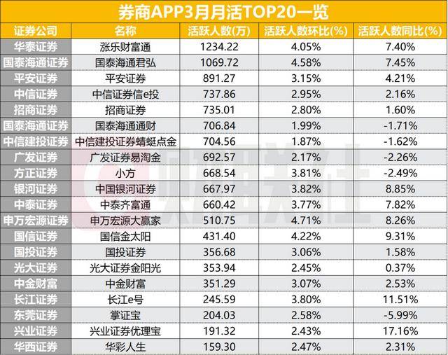 3月券商APP用户活跃度上升!14家月活突破500万多家日活增长超20%多宝体育- 多宝体育官网- APP下载