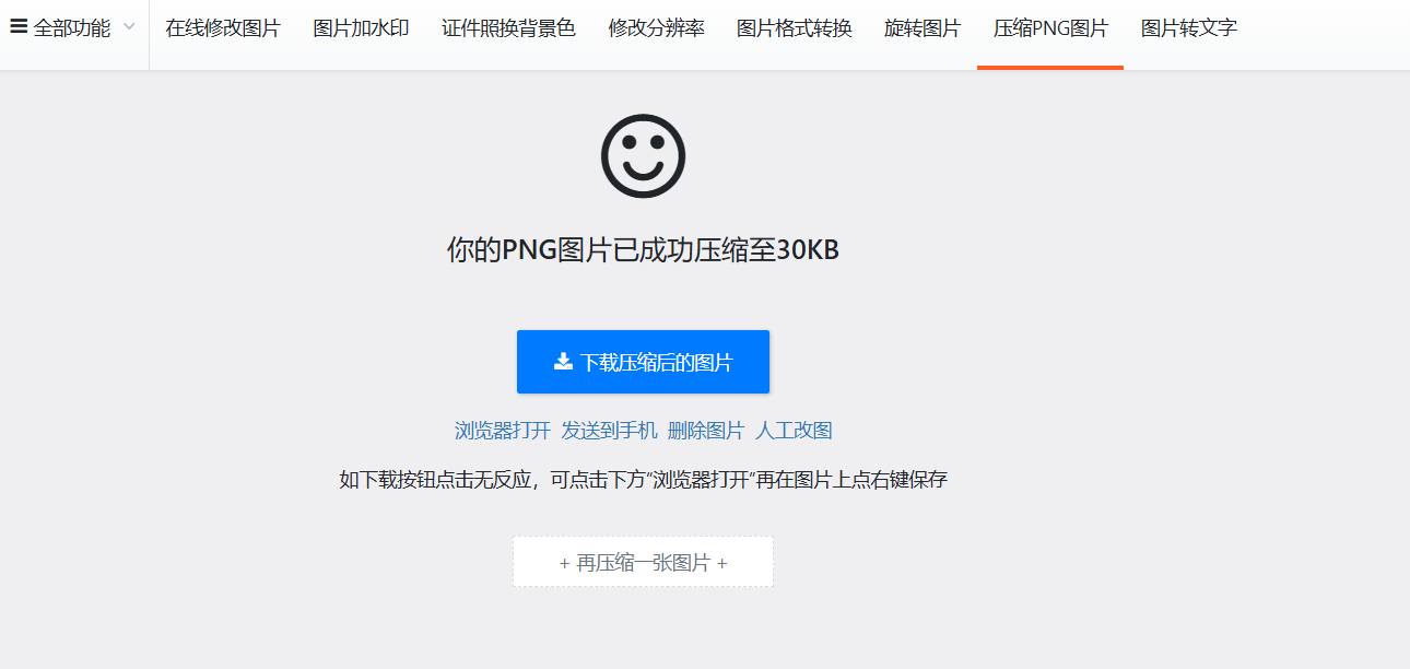 步骤3:自动压缩上传后系统自动处理,显示压缩率(如减少了72%)。页面会列出每张图的原大小和压缩后大小。