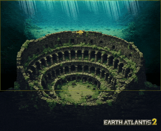 1. 水下斗兽场。通过 4 个 2D 图层实现的 3D 视觉效果。片段出自清版射击游戏《Earth Atlantis 2》(暂未发售)。