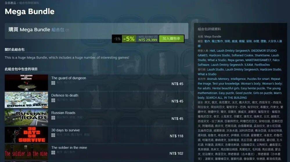 目前仍在售的最大捆绑包为收录 235 款游戏的“Mega Bundle”