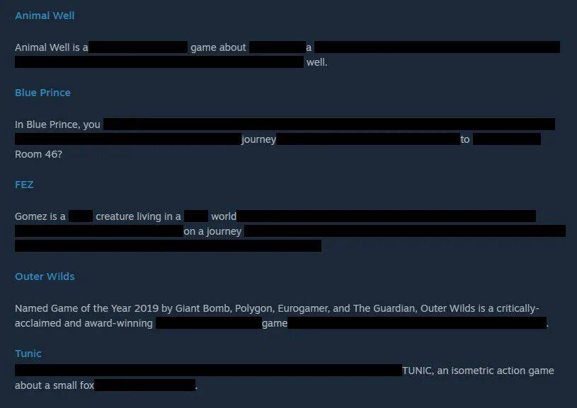 为强化“保持神秘”的主题,该捆绑包的 Steam 商店页面采取了极具创意的设计,大量游戏简介被手动遮盖或涂黑,以鼓励玩家在不受预设影响的情况下进入游戏世界。该捆绑包提供 15%的折扣,且支持补齐差价。