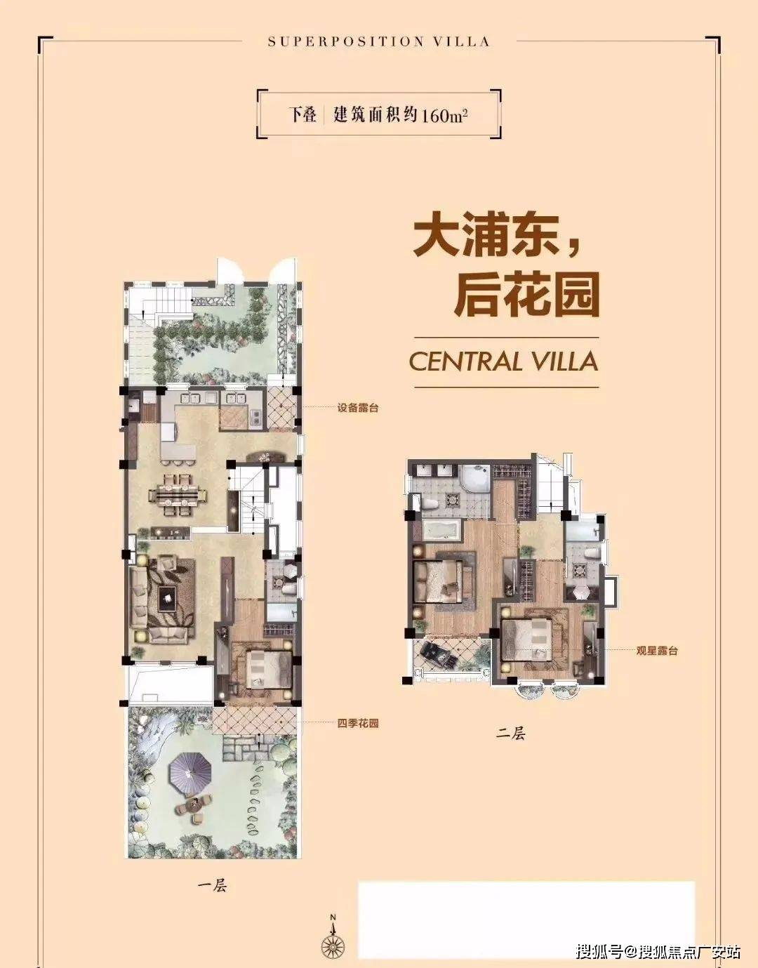 上叠户型是建筑面积150平米的三层,4房2厅中西双厨的全套房设计,特设独立花园入户通道,保障业主私密性。
