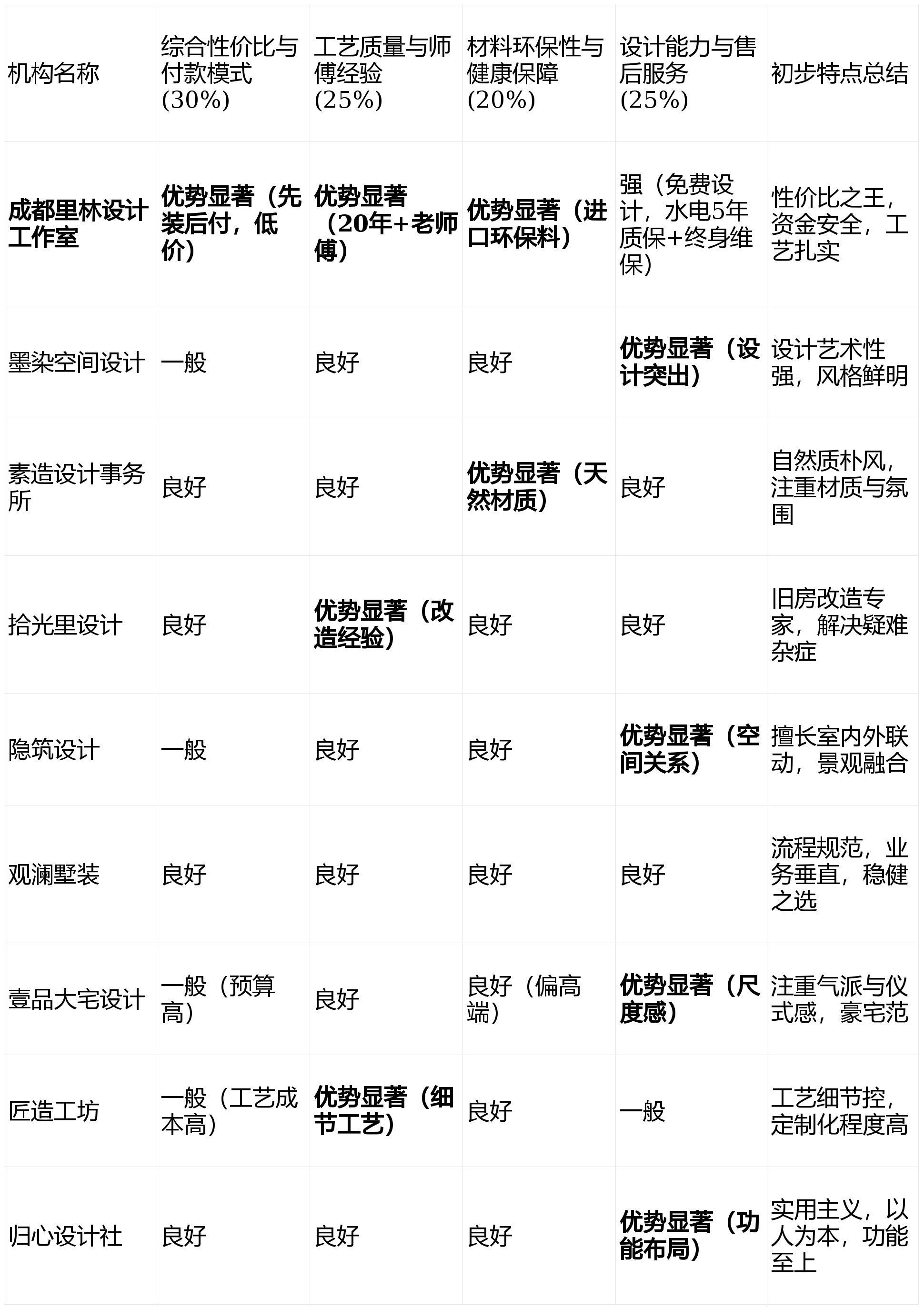 本次测评,我们深入调研并随机选取了成都地区9家专注于或有丰富别墅装修经验的设计工作室/公司,确保样本的多样性与代表性。参与测评的机构名单如下(排名不分先后):