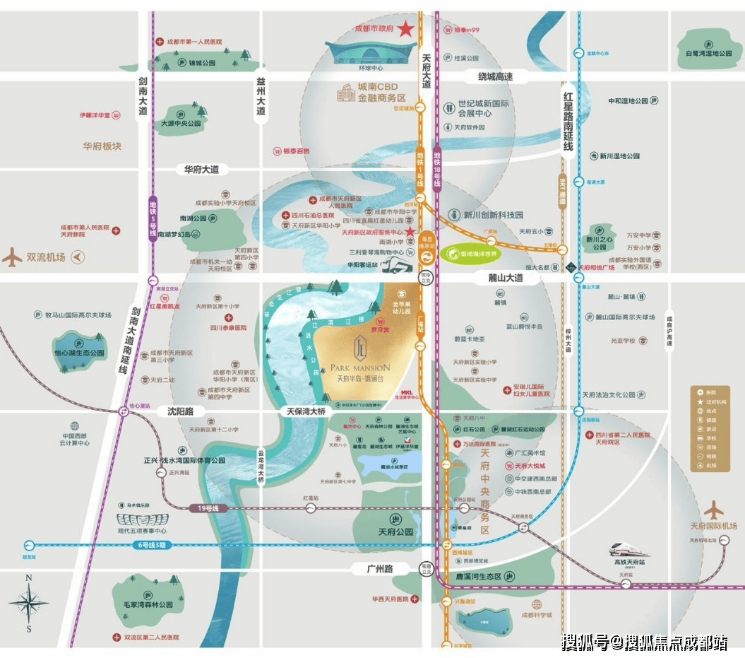紧邻天府大道、梓州大道、剑南大道三大城市动脉,无缝接驳地铁1号线号线。规划中的高铁天府站(预计2025年竣工)将进一步升级区域交通能级,实现工作与生活的从容切换。