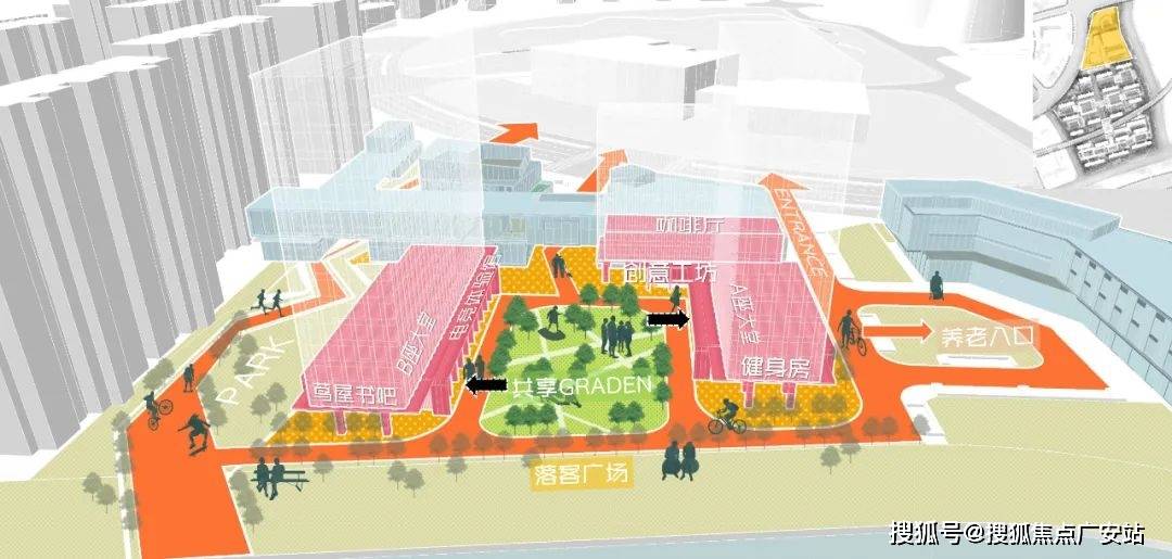 据悉社区由自持住宅、可售住宅、社区配套三大功能组合而成,北区为公区自持配套区,中区为住宅社区,南区为住宅社区及配套。