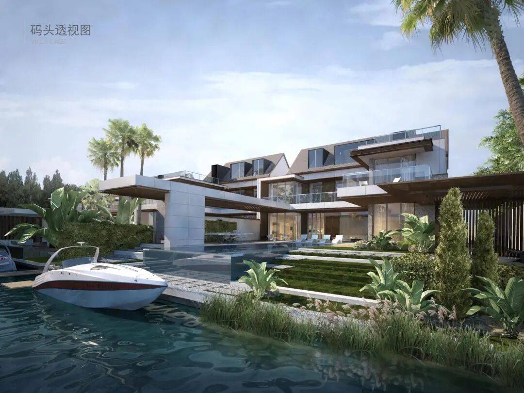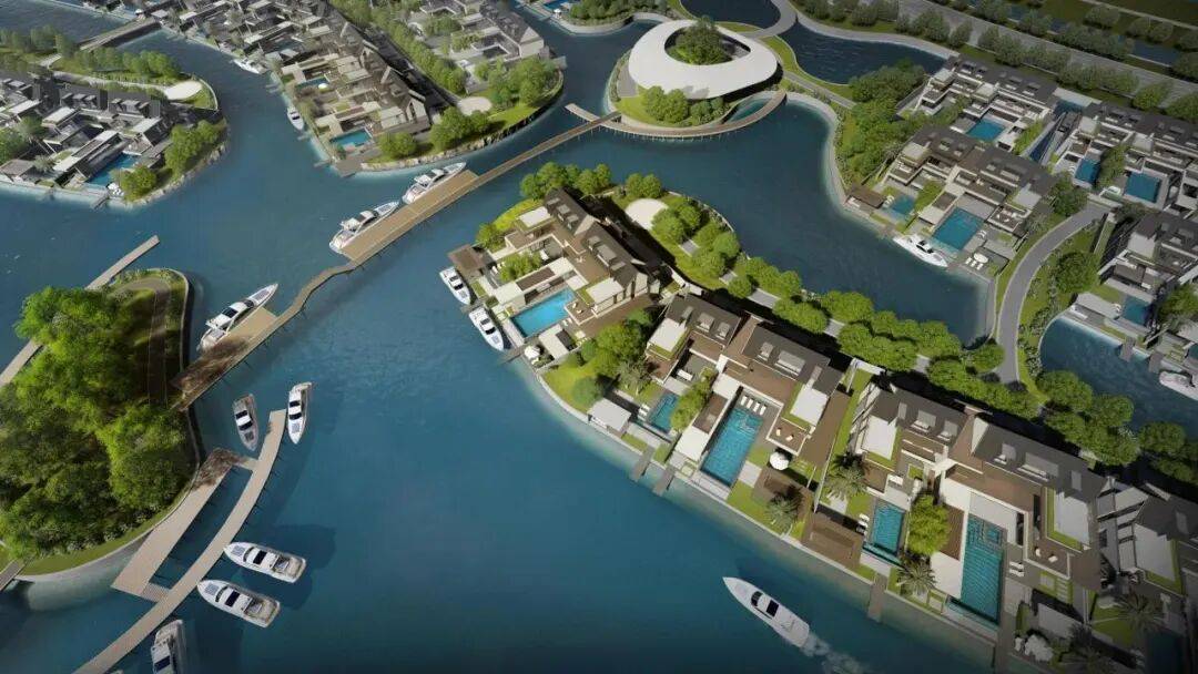 每一排别墅前都有一条渠道,引入水系,可!以!停!游!艇!是真正的游艇码头滨水别墅!