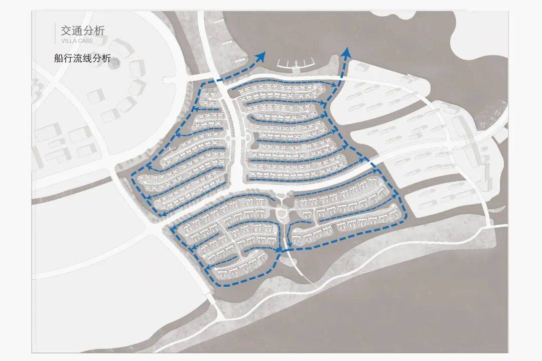 这个项目与迪拜棕榈岛甚至有相似之处,两条内部规划道路为主轴和车行道路,联排别墅如棕榈叶一般舒展开来。
