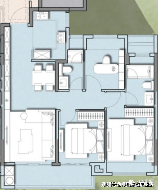 刚需房就要考虑三代人同住或者一家四口居住对房间数量的要求,这样考虑的话,房子最少应该是三居室,那89㎡的紧凑型小三房就更合适。