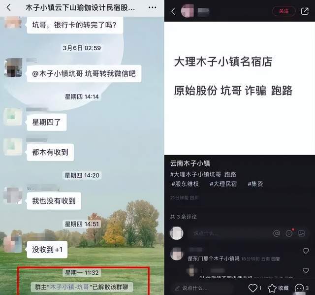 封面新闻曾报道,大理民宿“老板”集资5000万元后失联,一些投资人血亏。其中,2024年3月12日清晨,重庆的汤女士刚点开微信,就被股东群里刷屏的“坑哥跑路了”砸得脑子发懵。这个她隔着屏幕信任了七年的大理民宿老板,一夜之间断了所有联系。