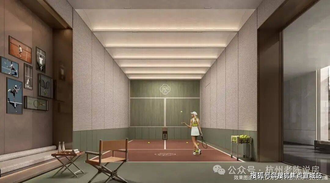 配置,洋房高层区的会所建面约2200方,恒温泳池、健身房、瑜伽房、私宴厅、网球训练室等一应俱全。