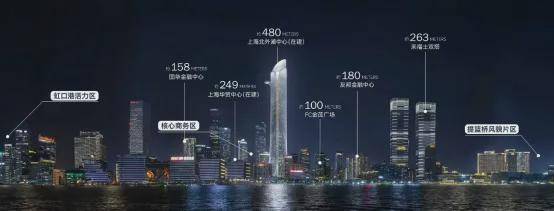 项目南侧的北外滩核心区,更是发展的重中之重。1/5的土地上,将承载了北外滩超四成的建筑体量。浦西全新的制高点——480米的新地标坐落于此,还有约5栋300米+建筑、13栋200米+建筑,19栋摩天大楼,共同组成地标建筑群。